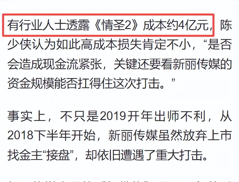 网传第一部票房小爆后,第二部全面升级,成本加到了4个小目标。