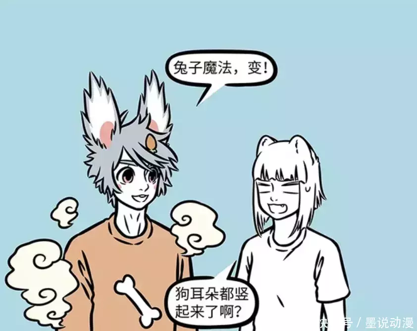 小玉变成哮天,那山寨成分更加明显。这哪是哮天真正模样,整张脸都是小玉的样子,还保留着兔子耳朵。如果说这是哮天和小玉的孩子,那还有几分可能。九月也吐槽,这狗耳朵都竖起来了。那么小玉是不是会就此停下变化之术?答案并没有。