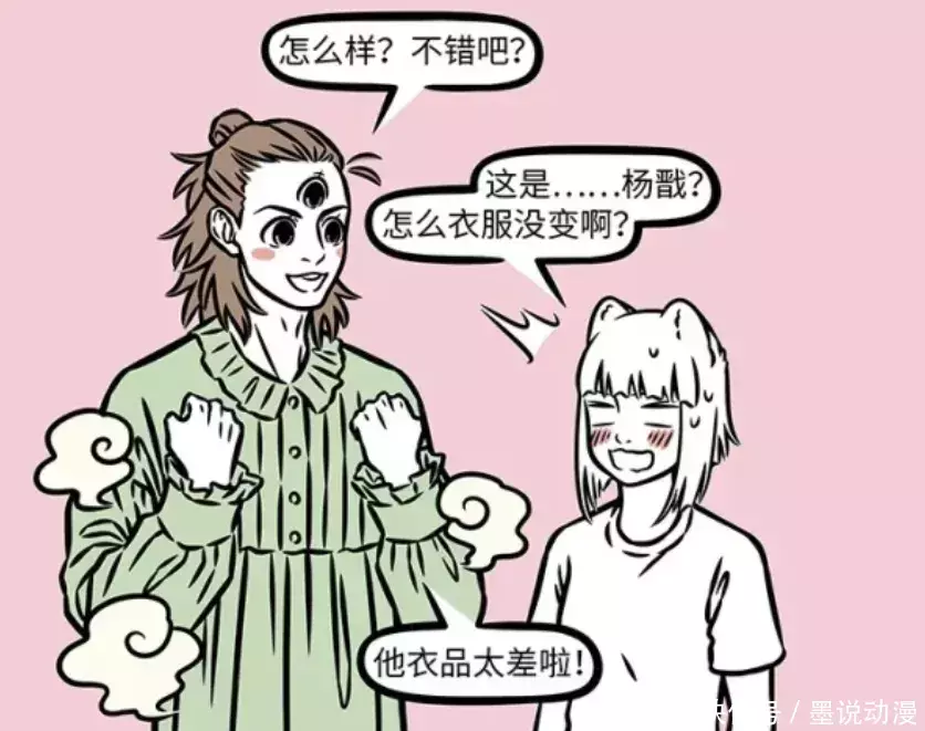 谁能想到,小玉变成杨戬的模样,但是衣服并没有跟着变化。这样的杨戬看起来有点奇怪,虽说有百分之八十的相似度,但哪哪都有小玉的影子。九月被小玉吓了一跳,还问她这是不是杨戬,为何衣服没有变化?小玉告诉九月,是因为杨戬的衣品太差,所以才保留原本的裙子。