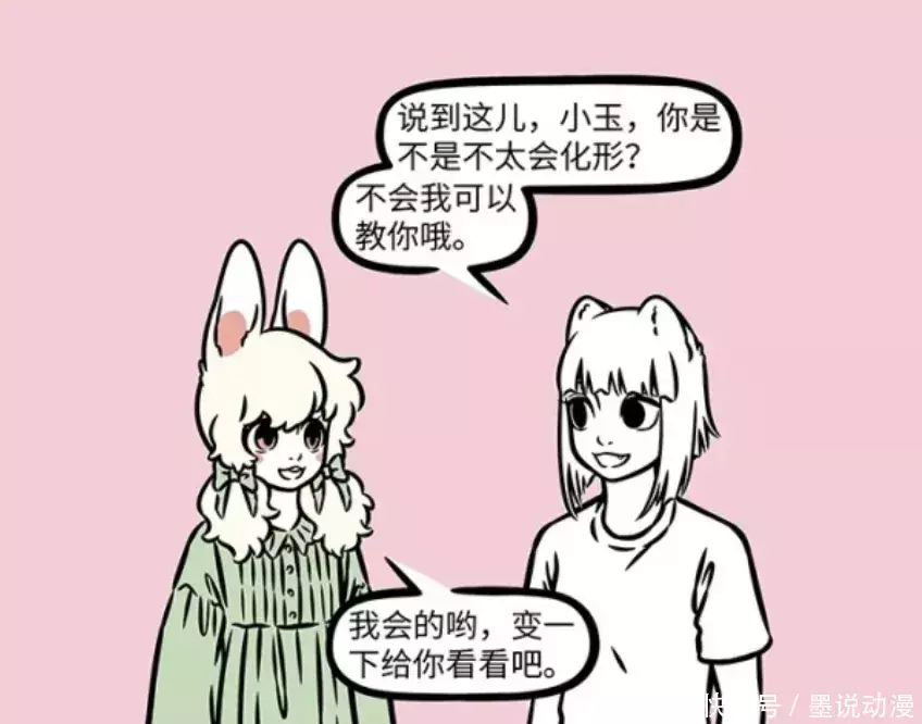 《非人哉》漫画版,如果有人问,谁的化形术最强?那九月肯定有一席之地。在九尾狐族的化形考试中,她可是第一名。小玉平时不怎么变化模样,所以九月觉得她可能不太擅长。不过小玉会用兔子魔法,可以变化成为其他人的模样。只是不管变成杨戬,还是敖烈都像山寨版。就算变成无机物,也变化不到位。