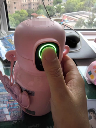 这种指纹水杯需要按主人指纹才能解锁杯盖没有指纹的话就算直接拧也拧不开