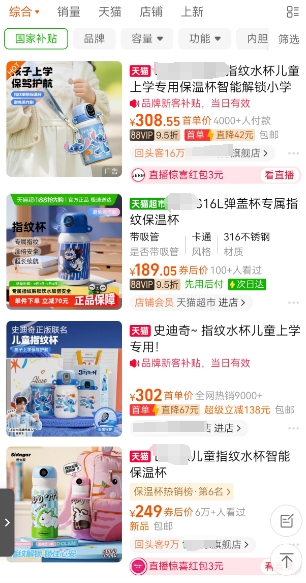 小侬搜索购物平台发现和普通水杯相比指纹水杯的价格也有点“辣手”大众款也要160-200多元贵一点的高达300-400多元而且销量都很高