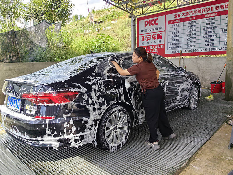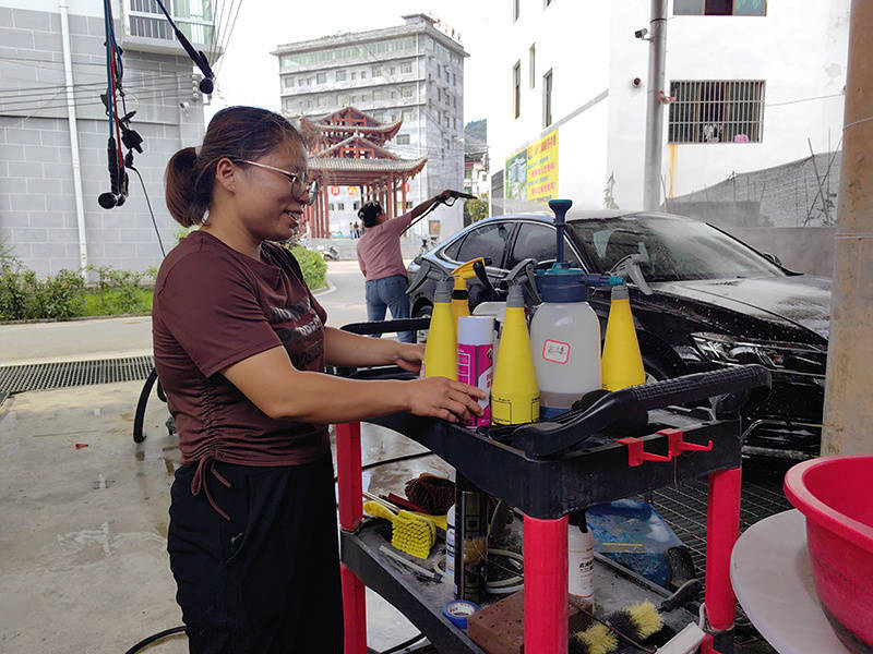 荆竹社区是白沙镇2016年实施易地扶贫搬迁成立的安置点,有120平方米的面积长期闲置,经当地政府实地调研和市场需求分析,决定将闲置土地用于发展洗车场,并以租赁方式租给易地搬迁群众发展洗车业务,既解决了资源闲置问题,又带动了易地搬迁群众就业。2023年8月,小区居民安小燕承包下来成为洗车场负责人。