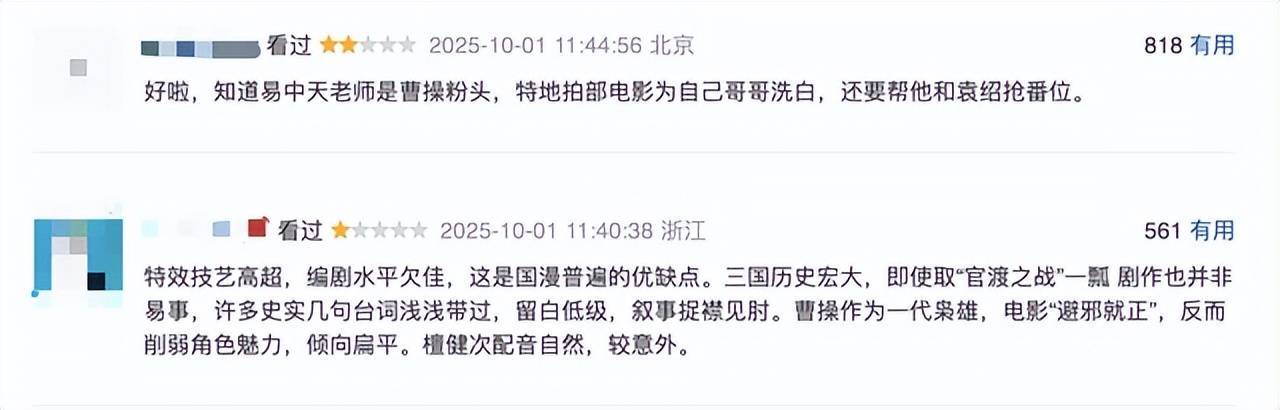 综合影评内容来看,《三国的星空》之所以口碑崩盘,主要是因为电影不尊重史实,不仅没有展现出曹操这个历史人物的多面性和复杂性,反而塑造成傻白甜了,这自然得不到观众的认可。