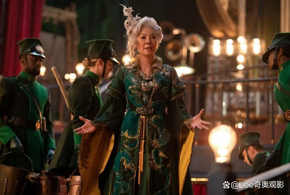 格琳达则成为奥兹国光鲜亮丽的良善象征,她住在翡翠城皇宫中。在莫里贝尔夫人(杨紫琼饰)的操控下,格琳达成为奥兹国人民眼中充满粉红泡泡的安抚力量,并且让他们相信奥兹国在大巫师的统治之下一切都很好。