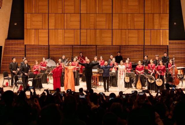 在艺术总监、著名二胡演奏家、中央音乐学院院长于红梅领衔下,指挥家刘沙执棒中央音乐学院民族管弦乐团,携手笙演奏家王磊、古筝演奏家宋心馨、唢呐演奏家刘雯雯等优秀音乐家,演绎了《丰收锣鼓》《百鸟朝凤》等多部民族器乐佳作,为当地观众献上了一场精彩的民乐盛宴。